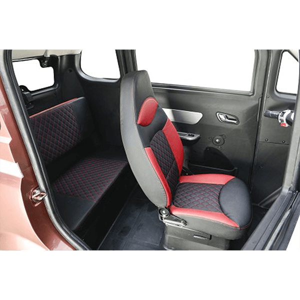 EEC approved, dustproof enclosed cabin with 3 seats and up to 90 km range.